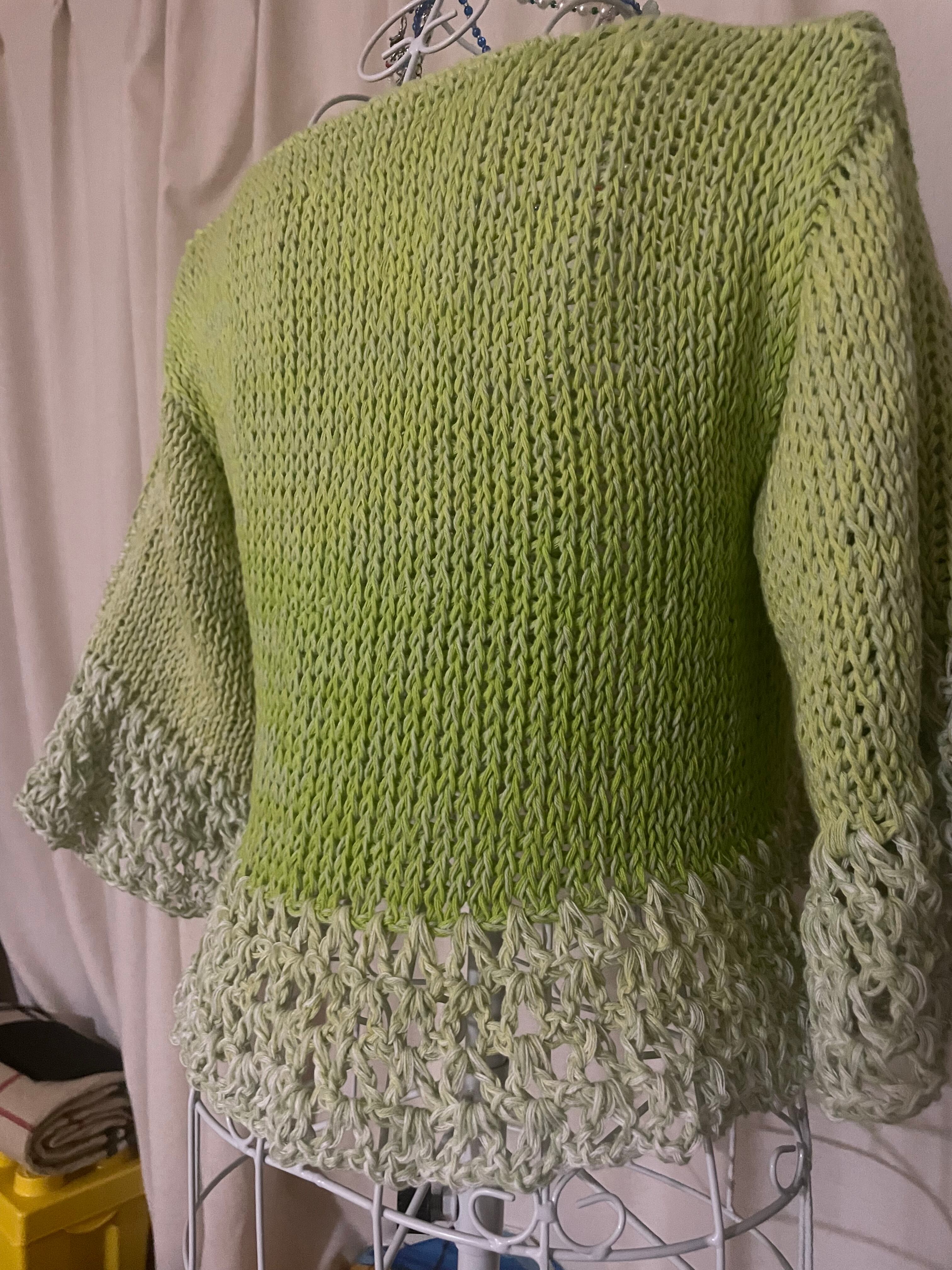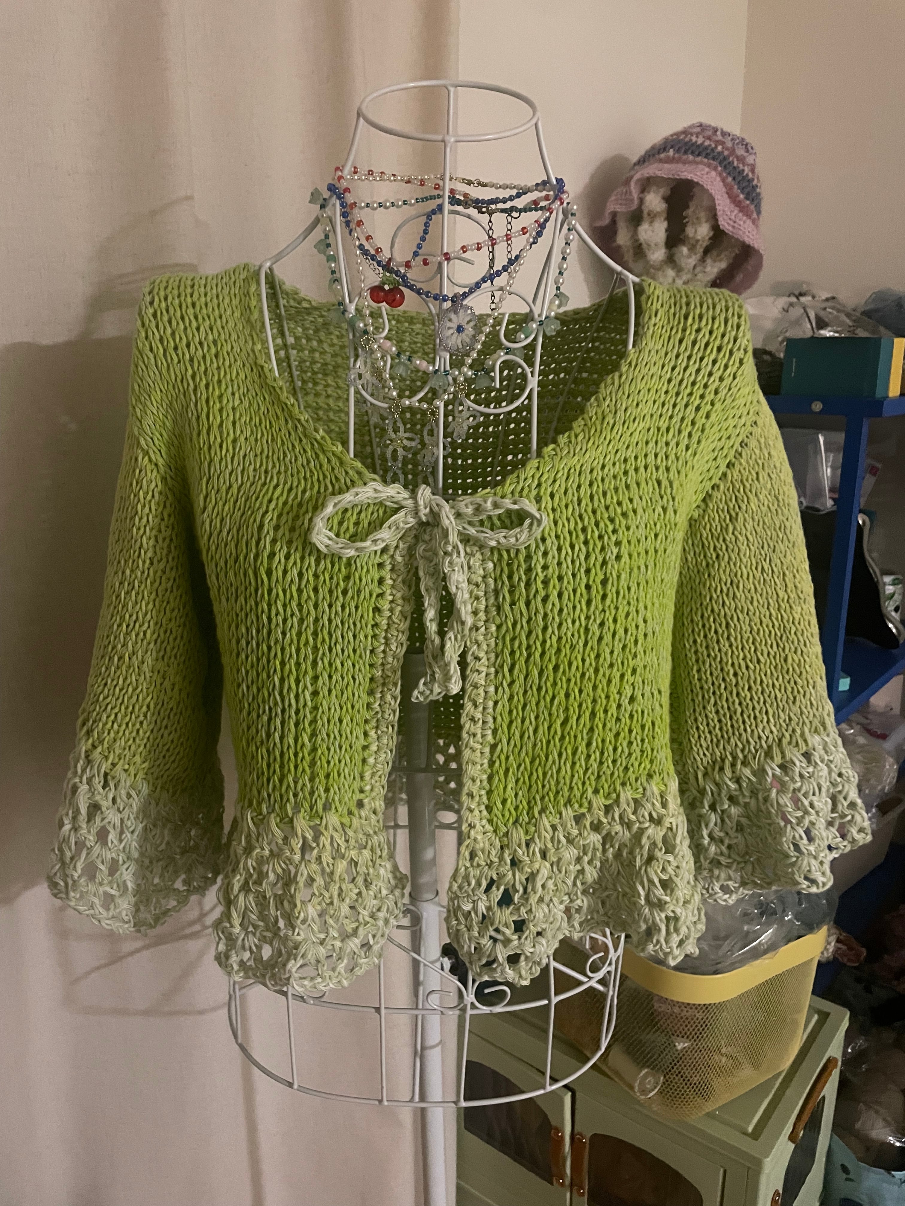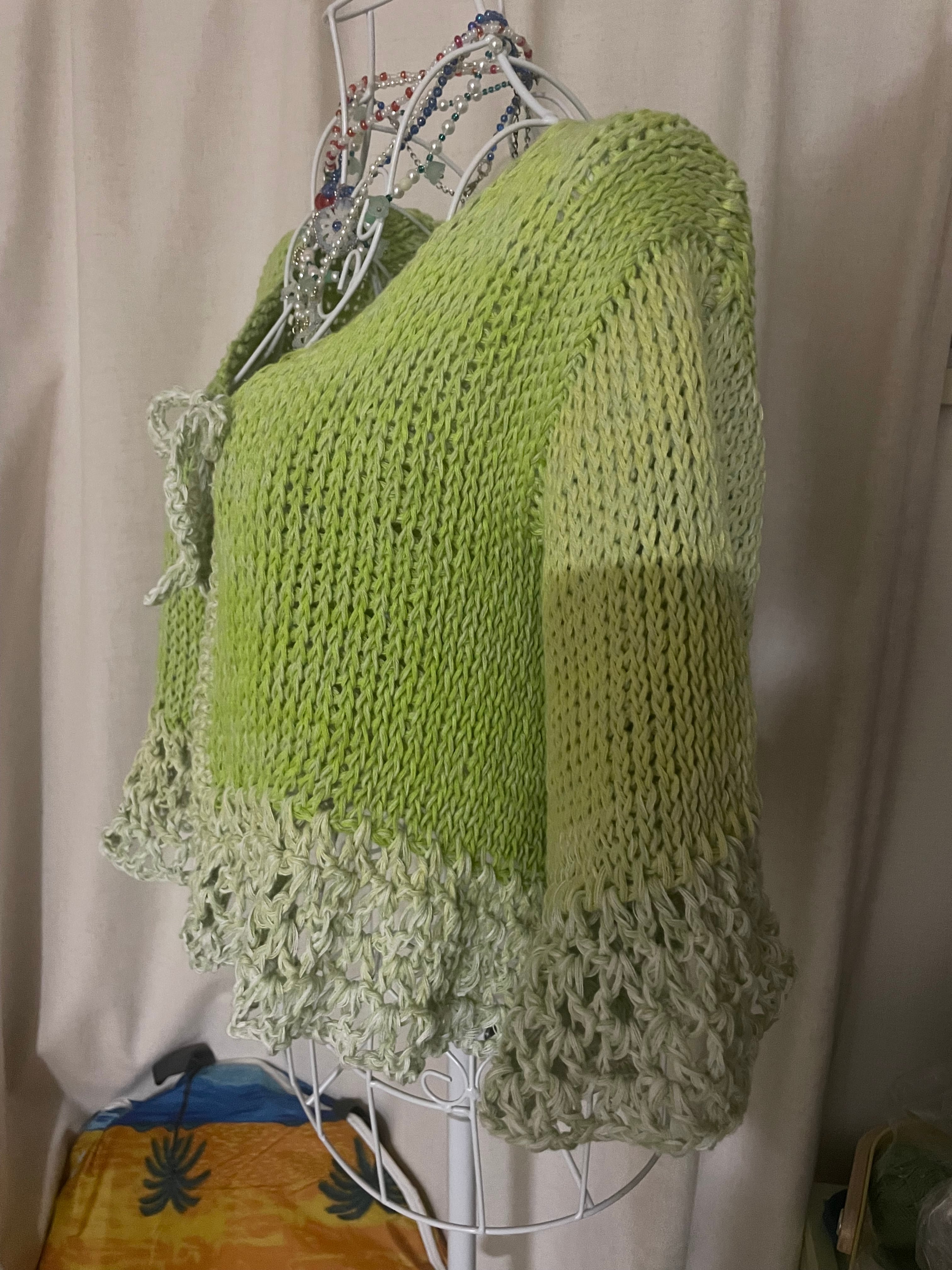 イエローグリーンの七分袖カーディガン